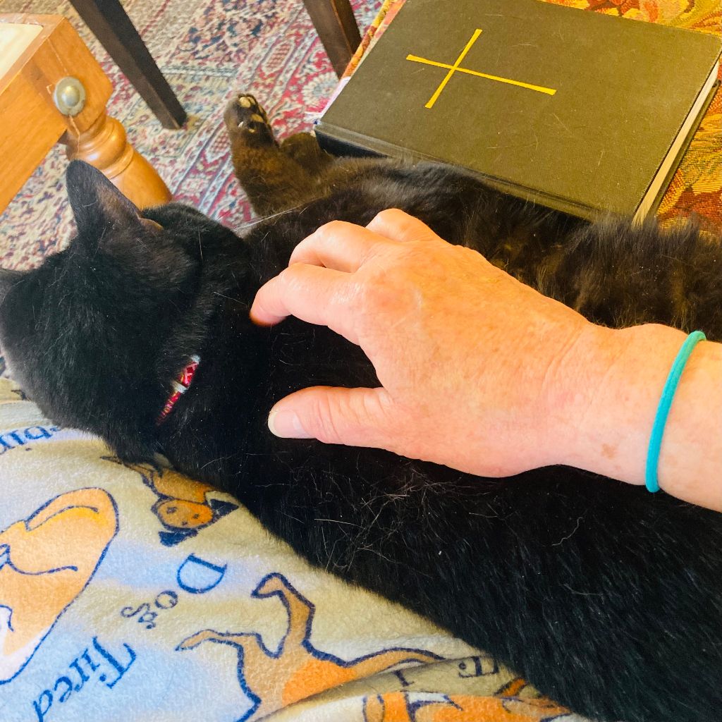 Me (exclaiming loudly with alarm immediately after exiting Thursday Morning Prayer, having attended with Grandkitty Porky for his first time) – Oh, No!
