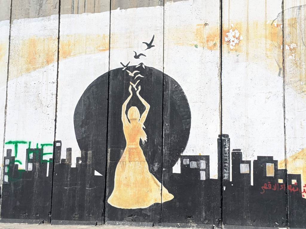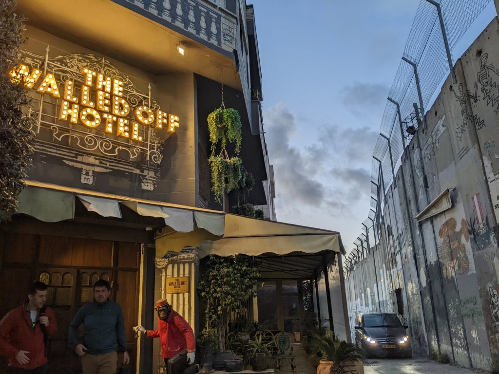 Pilgrimage Day 4: we spent the day entirely in Bethlehem. While I definitely appreciated the sacred Christian sites that we visited, it was the moments of living into present day ministry that moved me the most. We spent the morning at St. Vincent Creche Orphanage for abandoned children, where we had a morning Eucharist before meeting the young children there (who were up to the age of six). We also spent some time at the Separation Wall that divides Israel from the West Bank. I returned to The Wall later in the afternoon with some fellow pilgrims to spend time at Banksy’s Walled Off Hotel (photo above). Returning to The Wall was not on the official pilgrimage itinerary; detours during pilgrimage are also a part of the journey.