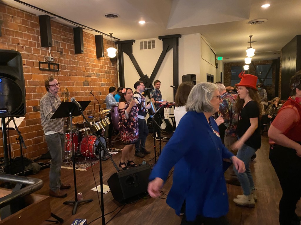 And The Cumbieros! Great live cumbia music for dancing, with Clarke on the keys.