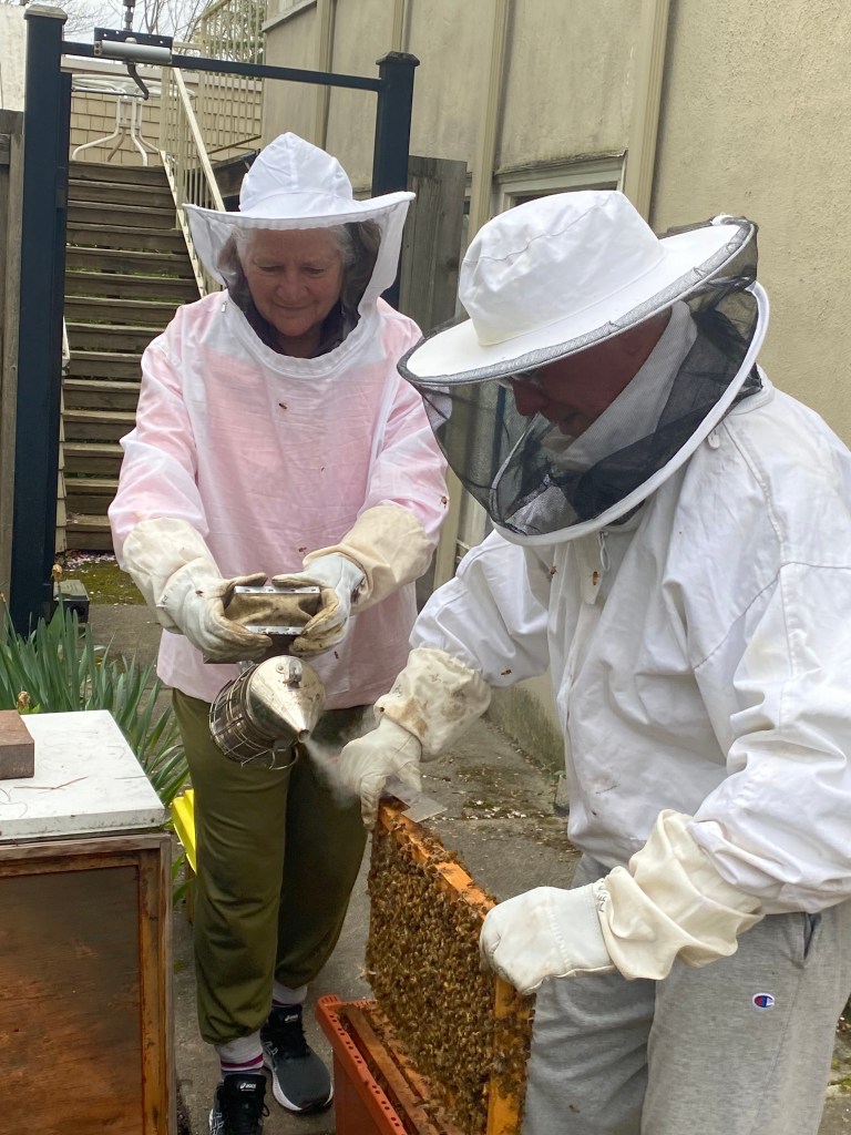After Party: Installing bees at the cathedral the very next day
