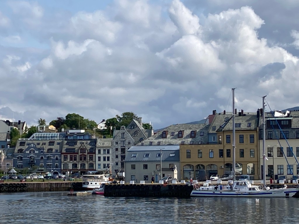 When I travel with Rob (or alone), I build in a halfway day for no commitments, for reading and wandering. Thank Goodness, Ed and Laurie, our tour guides here in Norway, know the value of a “day of leisure” too. They built one into our trip here in Alesund, a sleepier fishing town on the Geirangerfjord, recognized by UNESCO.