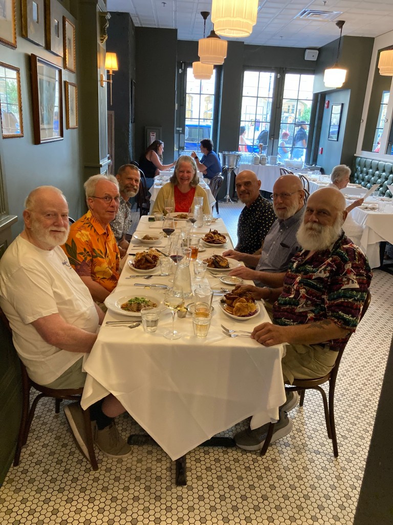 Usually the convention is an annual affair but, like the rest of the world, we had to postpone NOLA and skip gatherings in 2020 and 2021 as well. We all got our traveling feet wet again last year and met in San Mateo. That’s where we established the new tradition of convening over dinner for a chapter meeting during the week.