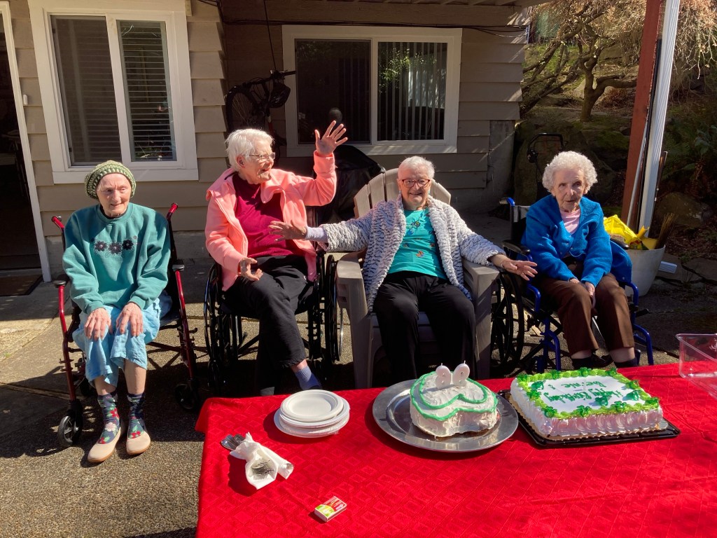 (2 cakes + 4 friends + 96 years ) Sunshine = 1 grateful heart while watching one’s mother beam